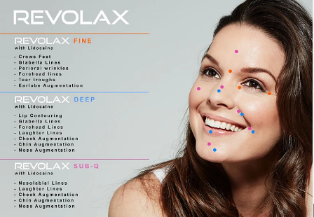Revolax SUB-Q with Lidocaine has the thickest properties within the product line. With its advanced ability to mold, maintain structure and longevity, it is recommended for treatment of deep sized to extremely severe wrinkles including nasolabial and face (cheek, chin, or nose) contours.